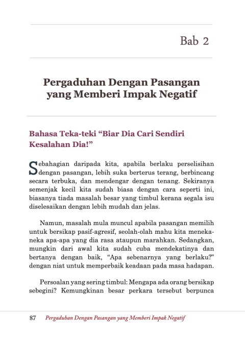 Buku ini mengajak melihat pergaduhan dari sudut yang berbeza. Bukan sebagai ancaman, tetapi sebagai peluang untuk memahami, memperbaiki dan menguatkan hubungan yang ingin dipertahankan.